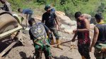 Panas Menyengat, Semangat Membara: TNI dan Warga Bahu-Membahu Cor Jalan di Medan Sulit